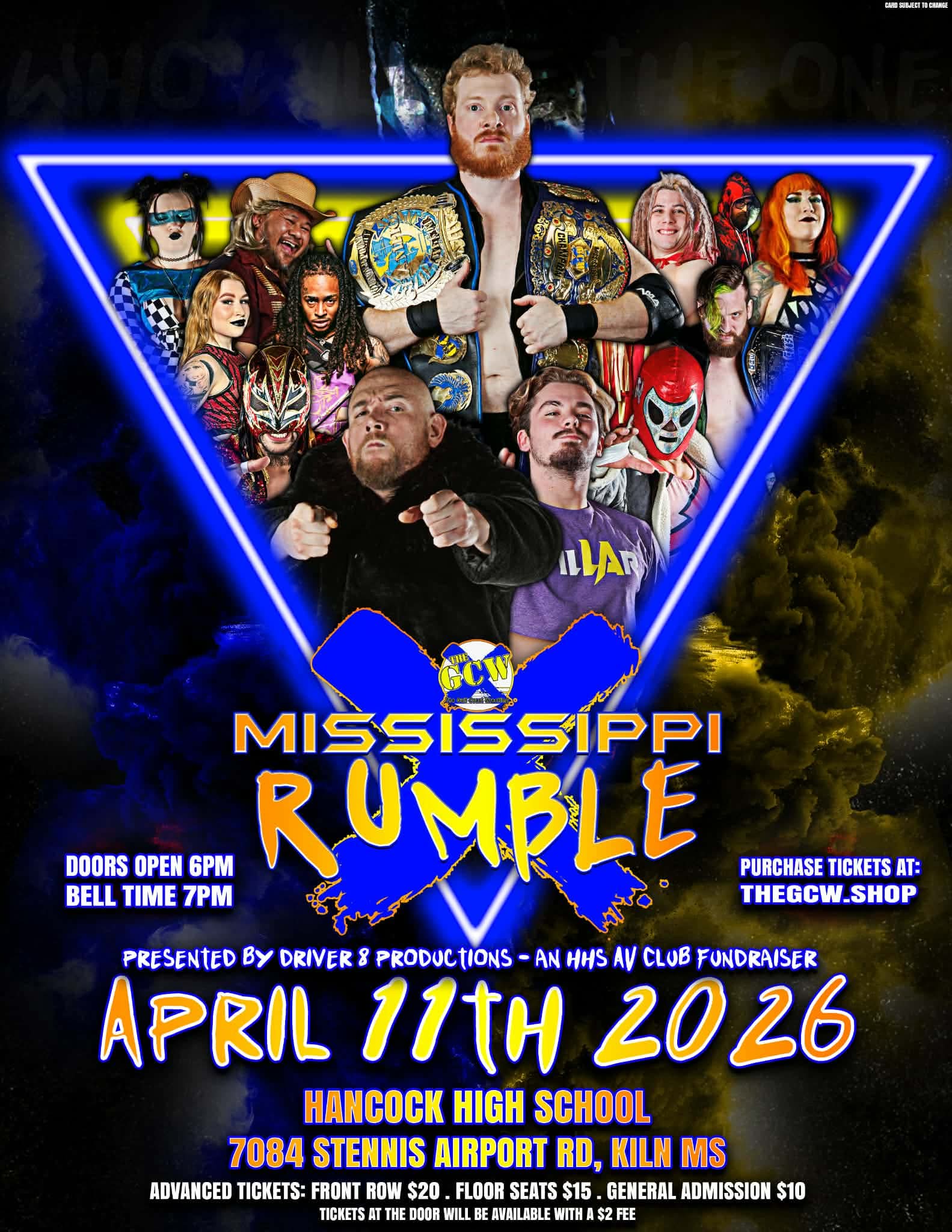 On Saturday, April 11th The Gulf Coast Wrestling is BACK in Kiln, Mississippi at Hancock High School for the 2026 Mississippi Rumble!